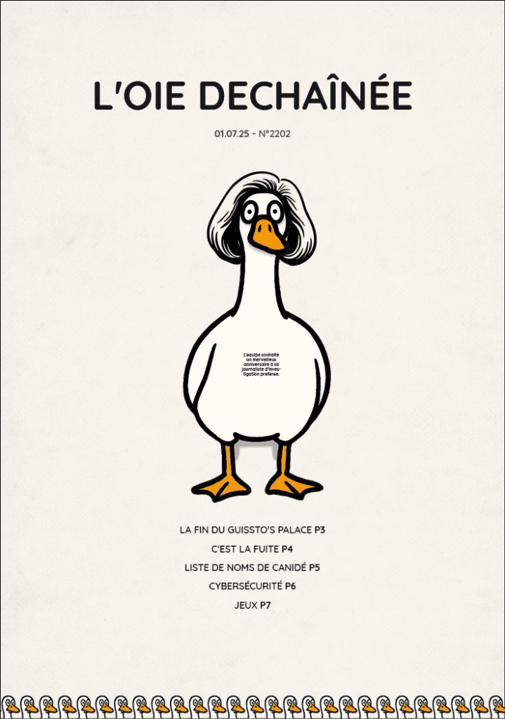 À la mémoire de Sylvie, l’oie des Spencer, morte l’année de création du journal.